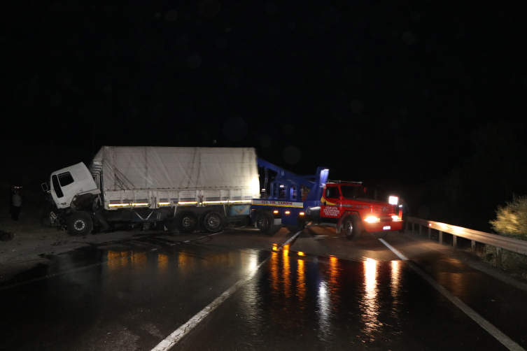 Tır sürücüsü ile yanındaki yolcunun sağlık durumunun iyi olduğunu bildiren Çelik, kaza nedeniyle kapanan yolun yeniden trafiğe açıldığını sözlerine ekledi.