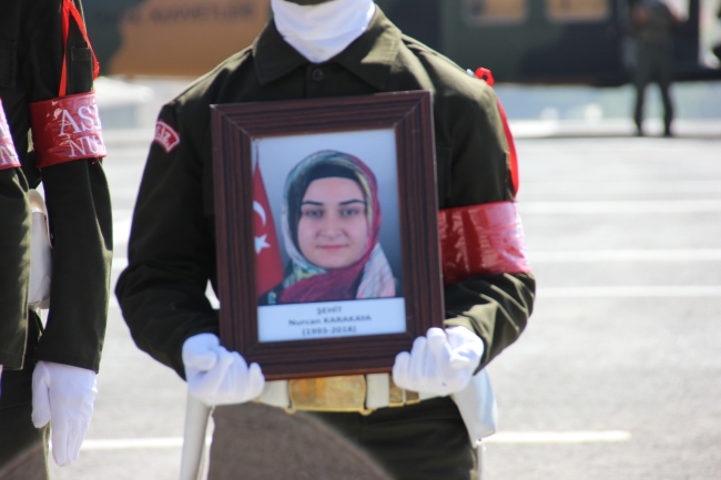 Hakkari'deki törenin ardından Yüksekova Selahaddin Eyyubi Havalimanı'na getirilen Karakaya ve bebeği için saygı duruşunda bulunuldu.