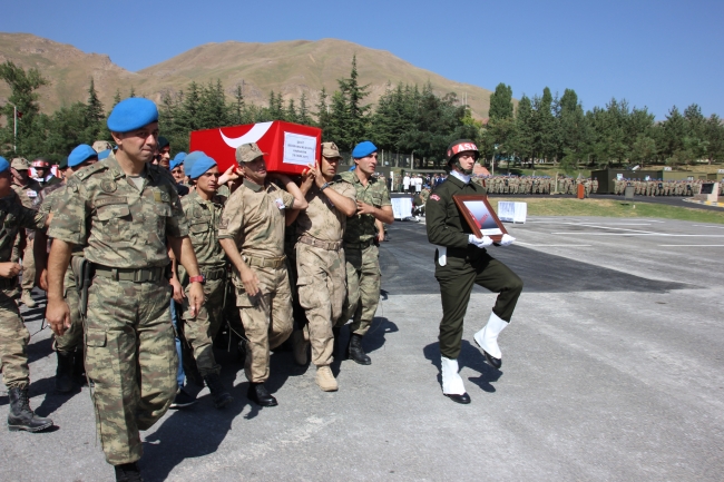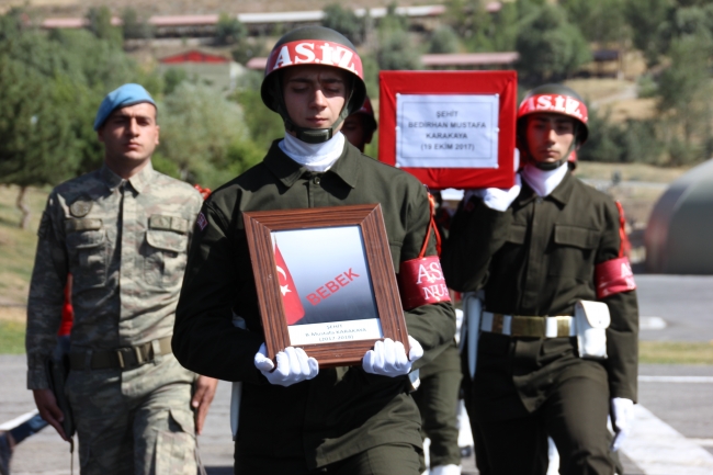 Dağ ve Komando Tugay Komutanlığı'ndaki törende Karakaya ve bebeğinin Türk bayrağına sarılı naaşları alana getirildi.