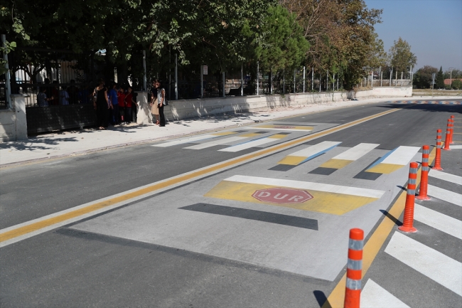 Denizli Fatih Mahallesi'ndeki Hacı İbrahim Cin Ortaokulu önündeki yolda bulunan "üç boyutlu yaya geçidi"nin diğer bölgelerdeki okul önlerinde de uygulamaya geçirilmesi planlanıyor.