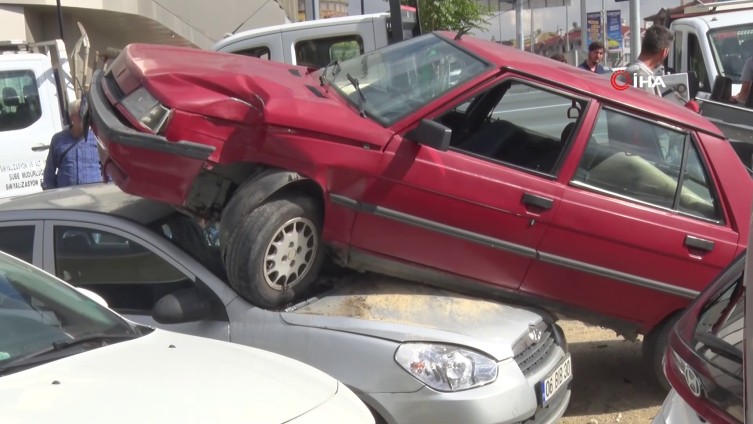 Savrulan otomobil, daha sonra yeşil ışığın yanmasını bekleyen S.T. idaresindeki araca çarptı.