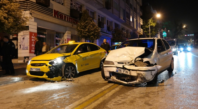 Alınan bilgiye göre, merkez Osmangazi ilçesi Altıparmak Mahallesi Altıparmak Caddesi'nde Tolga Akçamuş idaresindeki otomobil kontrolden çıkarak yol kenarında park halindeki Sabri Yıldızhan'a (35) ait 1 taksiye çarptı. Otomobil, caddeye park edilen iki taksiye daha çarparak durabildi.