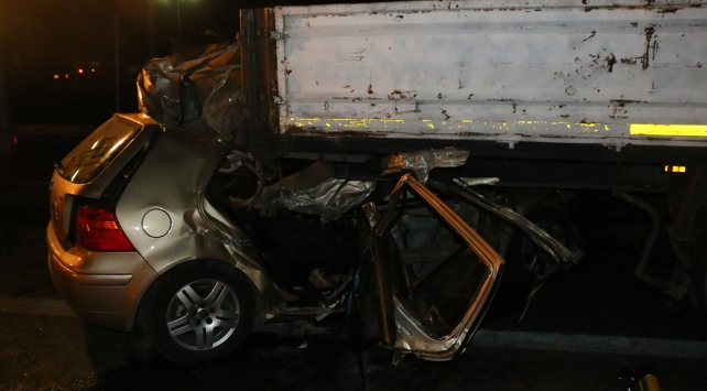 Alınan bilgiye göre, Aydın Kabak (21) yönetimindeki 09 NY 785 plakalı otomobil, Aydın-Denizli karayolu İsabeyli Kavşağı'nda Sefa Öncül'ün (29) kullandığı 20 D 1973 plakalı mermer yüklü TIR'a arkasından çarptı.