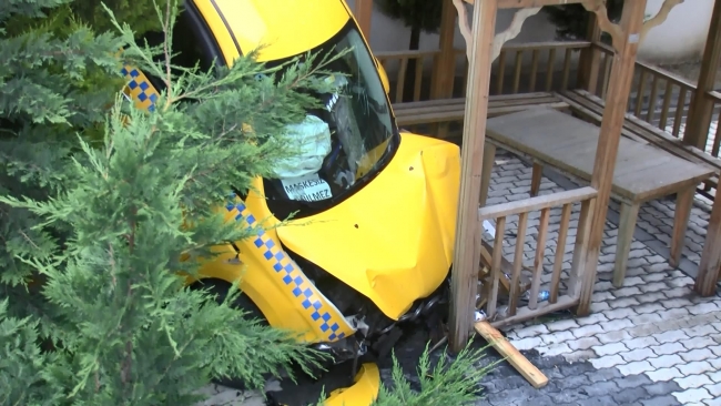 Çarpmanın etkisi ile savrulan taksi, sitenin bahçesine düştü. Taksinin çardağa çarpması sonucu araçta bulunan kadın yolcu yaralandı.