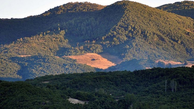 Helikopterlerin de destek verdiği operasyonda, kırsal alana dağılan teröristlerle çatışma sürüyor. AA