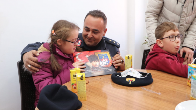 Ziyaret sonrası jandarma ekipleri, hatıra fotoğrafı çektirdikleri çocukları jandarma araçlarıyla okullarına götürdü.