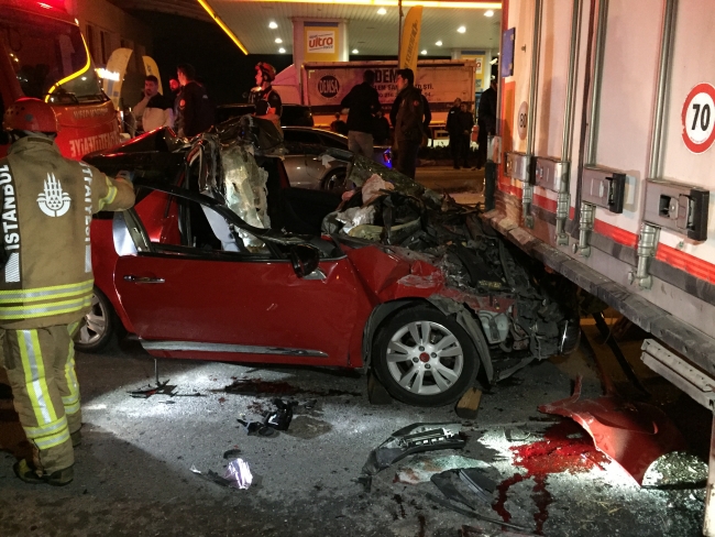 İstanbul'da Serkan D. idaresindeki otomobil, Pendik Ankara Caddesi Harmandere mevkisinde kontrolden çıkarak park halinde bulunan tıra arkasından çarptı.