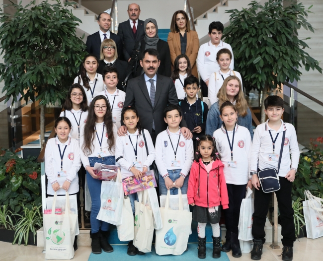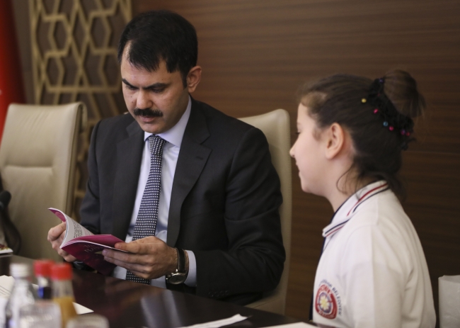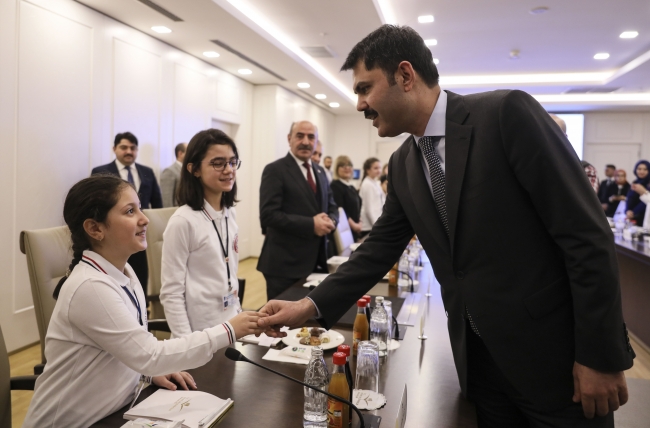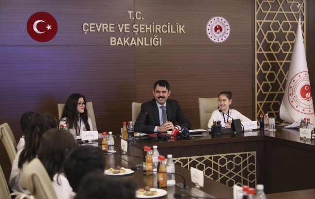 Ankara Büyükşehir Belediyesi Çocuk Meclisi üyesi 16 çocuğu Bakanlıkta kabul eden Çevre ve Şehircilik Bakanı Murat Kurum, çocukların çevre ve doğayla ilgili sorularını yanıtladı.