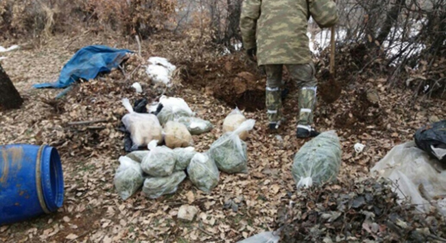 Operasyonda, 10 ev ve eklentisi ile Çavundur köyünün çevresinde yapılan aramada, araziye gömülü vaziyette 308 kilogram esrar, 15 kilogram kenevir tohumu ile sargı bezi, steril bisturi ucu, enjeksiyonluk solüsyon gibi çok sayıda tıbbi malzeme ele geçirildi.