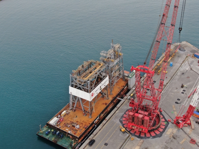 Haydarpaşa Limanı'nda bağlı olan geminin yanına getirilerek kurulan geminin üzerindeki platform söküm çalışmaları bir süredir dev vinç yardımıyla devam ediyordu.