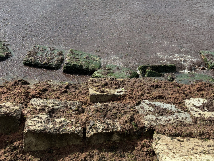 Sahildeki bazı alanlarda kırmızı yosun birikti.