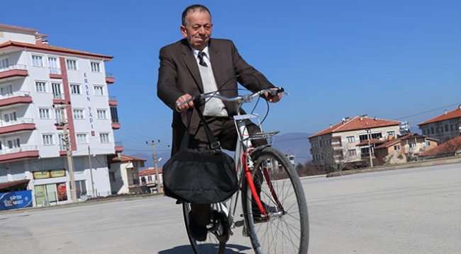 Yıllardır yürüyerek yaptığı evrak dağıtımı işini, yaklaşık 2 yıl önce Sağlık Bakanlığı'nın projesi kapsamında tahsis edilen bisikletiyle sürdürüyor.