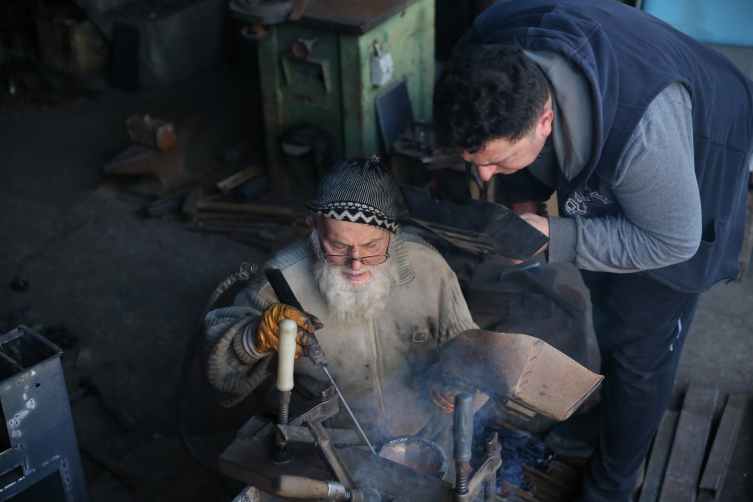 Yaşına rağmen işinden kopmayan Kaba, Güneysu Halk Eğitimi Merkezi Müdürlüğünce 13 Şubat'ta açılan kaynakçılık kursunda sanatını öğretmeye başladı.