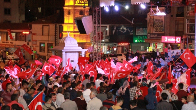 Belediye Başkanı Kazım Arslan da Cumhuriyet Meydanı'nda 15 Temmuz'dan bu yana nöbet tuttuklarını kaydetti.
