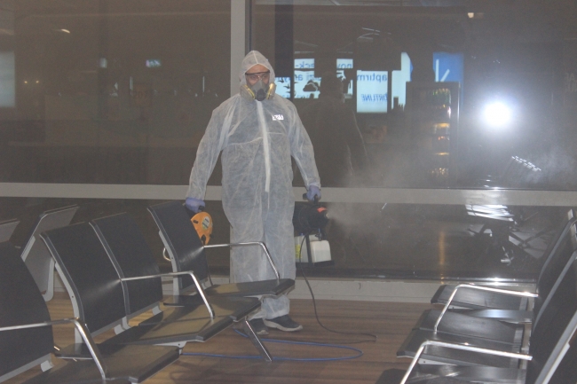Uluslararası standartlarda yapılan çalışmalar, uzmanlar tarafından ULV cihazları ile gerçekleştirildi. Dezenfektasyon çalışmalarının yanı sıra havalimanı binasının girişine ve terminalin yoğun kullanılan birçok alanına sıvı el dezenfektanları konuldu.
