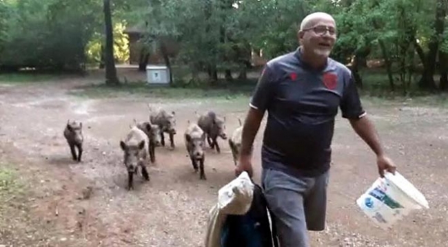 Bir elektrik dağıtım şirketinden emekli Eftal Erman, 17 Kasım'da, bir arkadaşı ile balık tutmak için Marmaris'e 5 kilometre mesafedeki Adaağzı’ndaki sahile gitti. Erman, olta ile balık tuttuğu sırada yanına 2 yetişkin ve 5 yavrudan oluşan 7 yaban domuzu sürüsü yaklaştı.
