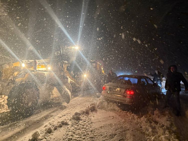 Yolda mahsur kalan 25 araç, ekiplerin çalışmasıyla kurtarıldı.