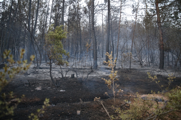 İhbar üzerine bölgeye, itfaiye ve orman işletme müdürlüğü ekipleri sevk edildi.