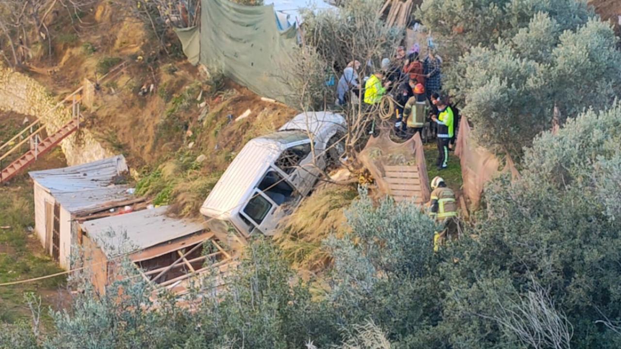 Yoldan yaklaşık 50 metrelik şarampole yuvarlanan araç, 108 Evler Sitesi'nin bahçesinde, bir apartmanın yakınındaki deponun çatısında durabildi.