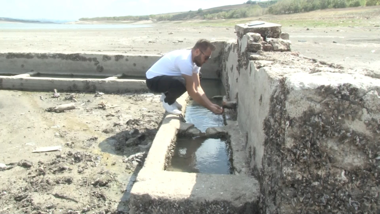 Barajdaki kuraklık dron ile çekilen görüntülerle ortaya koyulurken görüntülerde tarihi yalak ve çeşmenin tamamının gün yüzüne çıktığı ve hiç tahrip olmadığı görüldü.