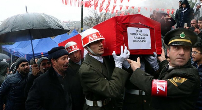 Fırat Kalkanı Harekatı'nda şehit olan Piyade Astsubay Çavuş Osman Açıkgöz'ün cenazesi, Başbakan Yardımcısı Veysi Kaynak'ın katıldığı törenle memleketi Kahramanmaraş'ta defnedildi.