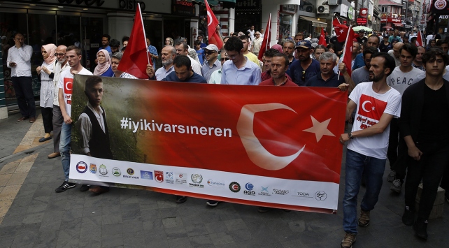 Trabzon'da, Maçka ilçesi kırsalında bölücü terör örgütü mensuplarıyla sağlanan sıcak temas sırasında şehit olan Eren Bülbül için yürüyüş düzenlendi.