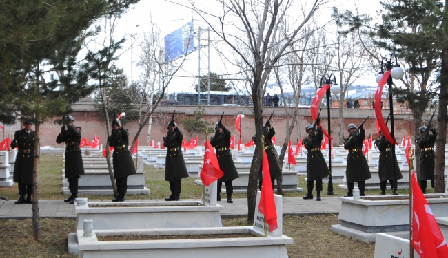 Türk Silahlı Kuvvetlerinin (TSK) Suriye'nin Afrin bölgesinde terör örgütlerine yönelik yürüttüğü Zeytin Dalı Harekatı'nda teröristlerce tuzaklanan el yapımı patlayıcının infilak etmesi sonucu şehit düşen 25 yaşındaki Piyade Teğmen Muhammed Kır'ın Türk bayrağına sarılı naaşı, Erzurum'da Çifte Minareli Medrese önündeki cenaze töreni sonrası askeri tören mangasınca top arabasına konuldu.
