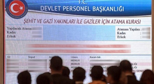 Buna göre Terörle Mücadele Kanunu'nun ilgili maddesine göre, Aile ve Sosyal Politikalar Bakanlığınca hak sahibi olduğu tespit edilerek, Devlet Personel Başkanlığı'na bildirilen 539 şehit ve gazi yakını ile gazinin ataması için noter huzurunda kura çekildi.