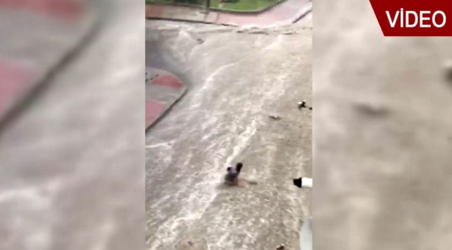 Sel sularına kapılan bir kişi böyle görüntülendi.