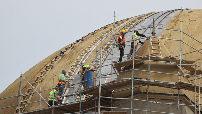Ana kubbe güçlendirme ve enjeksiyon çalışmaları, avlu kubbelerinin kurşun kaplaması tamamlandı.