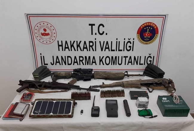 ''Aramada, M-16 piyade tüfeği, 2 AK-47 kalaşnikof piyade tüfeği, 4 el bombası, 5 M-16 piyade tüfeği şarjörü, 6 AK-47 kalaşnikof piyade tüfeği şarjörü, 2 şarjörlük, 105 adet 5.56 milimetre fişek, susturucu, el telsizi, 2 radyo, güneş enerjisi paneli, alıcı-verici cihaz, akü, 2 akımölçer, 3 sırt çantası, panço, 2 kilogram C-3 plastik patlayıcı, 7 elektrikli fünye ve muhtelif giyim eşyası ele geçirilmiştir. Konu ile ilgili adli tahkikat devam etmektedir.''