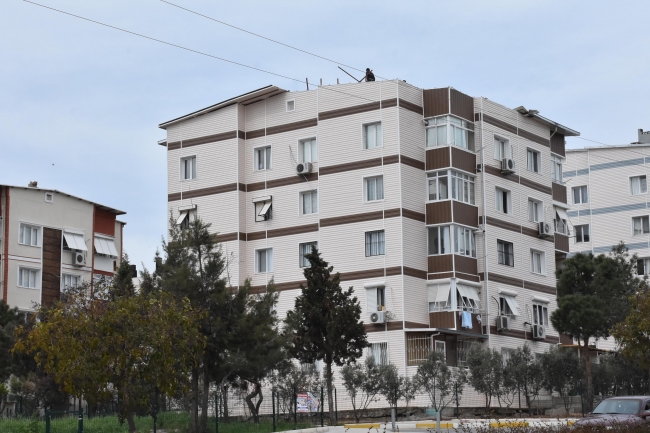 Buca ilçesinin İzkent Mahallesi'nde, öğle saatlerinde şiddetli rüzgar nedeniyle 5 katlı bir apartmanın tentesi uçtu. Çatı ters dönerken, kopan parçalar da sokağa düştü. Gürültüyü duyup pencereye çıkan mahalle sakinleri, çatının bir bölümünün ters döndüğünü görünce şaşkınlık yaşadı.