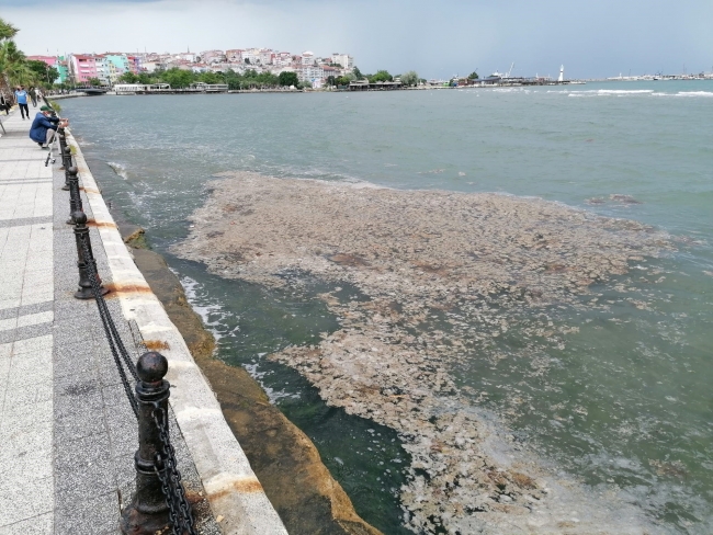 Silivri açıklarında balık tutan bazı balıkçıkların ağlarını deniz salyası kapladı. Balıkçı teknelerin olduğu alanlarda görülen deniz salyası sahil kısmında görüntü kirliliğine neden oldu.