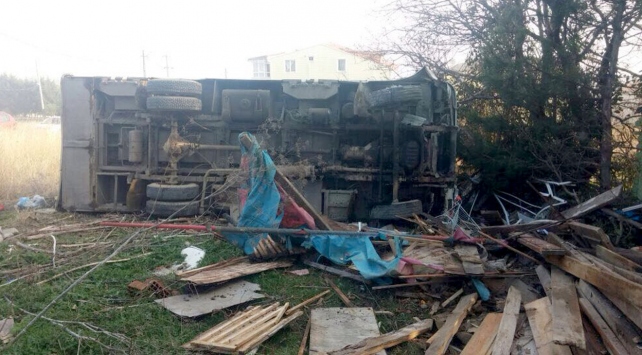 Silivri'de öğrenci servisinin devrilmesi sonucu 14 kişi yaralandı.