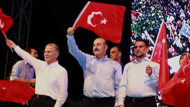 Hiçbir gücün Türk milletini yolundan çeviremeyeceğini belirten Çavuşoğlu, önümüzdeki süreçte atacakları adımlar olduğunu, ordudan, askeriyeden, yargıdan, Dışişleri Bakanlığından hainleri temizleyeceklerini, kanunlar çerçevesinde, hukukun üstünlüğünde ne gerekiyorsa onun yapılacağını söyledi.