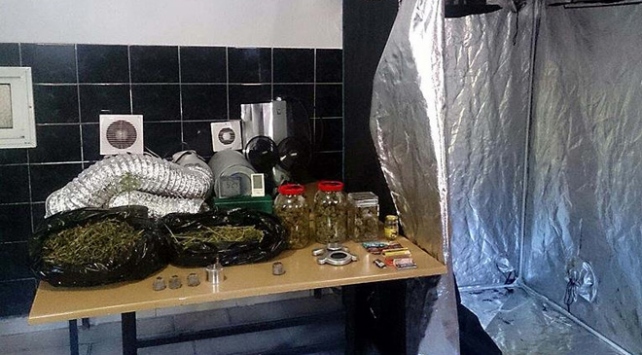 Villada yapılan aramada, uyuşturucu yapmak için düzenek, paketlenmiş halde 840 gram esrar maddesi ele geçirildi.
