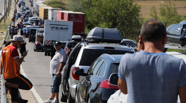 Avrupa'nın farklı ülkelerinde yaşayan Türk vatandaşlarının, izinlerinin bitmesinin ardından dönüş yoluna geçmesiyle oluşan araç kuyrukları; Kapıkule'de 4, Hamzabeyli'de 3, Pazarkule ve İpsala sınır kapılarında da 1 kilometreye ulaştı.
