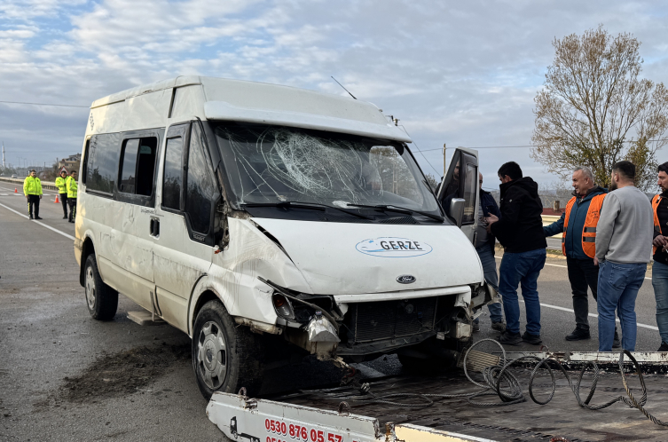 Gerze ilçesinden Sinop Organize Sanayi Bölgesinde faaliyet gösteren bir fabrikaya işçi taşıyan Muhammed Ali Yurbaş idaresindeki 57 S 4056 plakalı minibüs, Taşmanlı mevkisinde refüje çarparak emniyet şeridine devrildi.