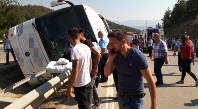 Sinop'un Boyabat ilçesinde, yolcu otobüsünün devrilmesi sonucu ilk belirlemelere göre 9 kişi yaralandı.