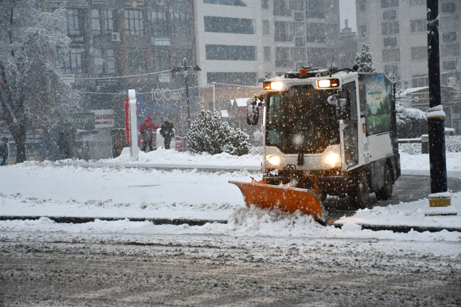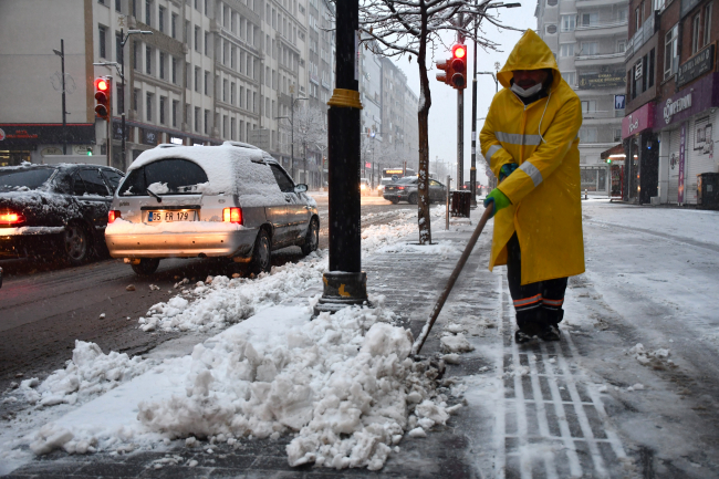Belediye temizlik işleri ekipleri ise kaldırımlarda kar küreme çalışması yaptı.
