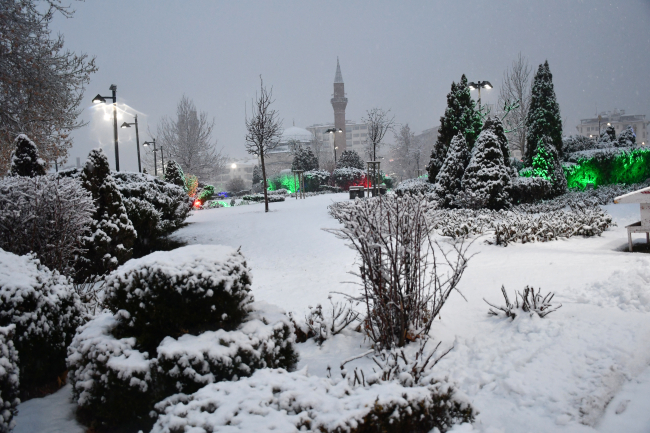 Aralıklarla devam eden kar yağışının ardından Selçuklu ve Osmanlı döneminden kalan tarihi yapılar da karla kaplandı.