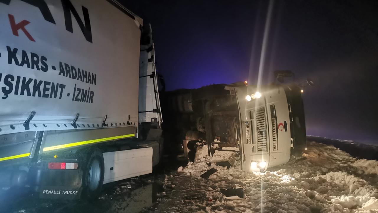 Y.A. idaresindeki tır, devrilen kamyona ve otomobile çarparken, İ.Ç'nin kullandığı yolcu otobüsü ise otomobile çarparak durabildi.