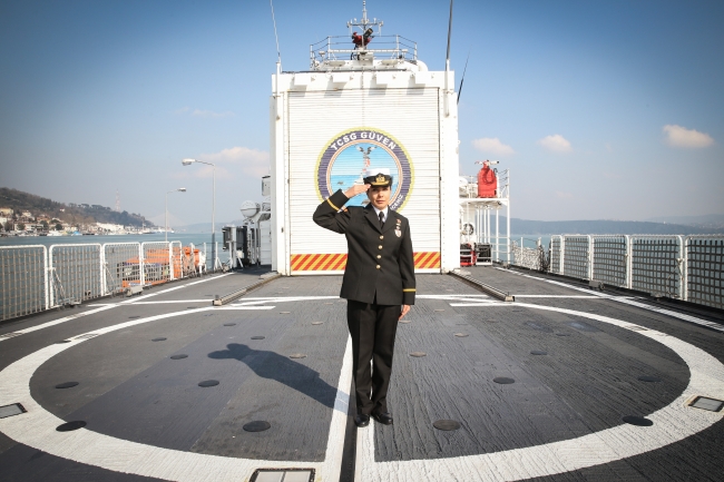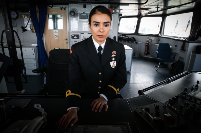 "Öncelikle her ne kadar kolluk görevlisi olsam da içimdeki kadınlık ruhundan dolayı, karşılaştığımız düzensiz göçmenler ve özellikle çocuk yaştaki göçmenler duygusal olarak zorluyor olsa da gereğini yerine getirmekten geri adım atmıyoruz. Gemimizde kadın-erkek ayrımı yok. Tüm meslektaşlarımla biz bir güven ailesiyiz. İhtiyaç duyduğum her konuda bana yardımcı oluyorlar."