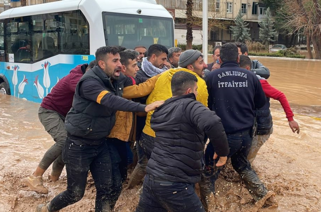 Öte yandan, merkez Eyyübiye ilçesine bağlı Mance Mahallesi'nde sel sularına kapılan araçların sürüklenmesi, çevredeki binaların çatısına çıkan vatandaşlar tarafından cep telefonuyla görüntülendi.