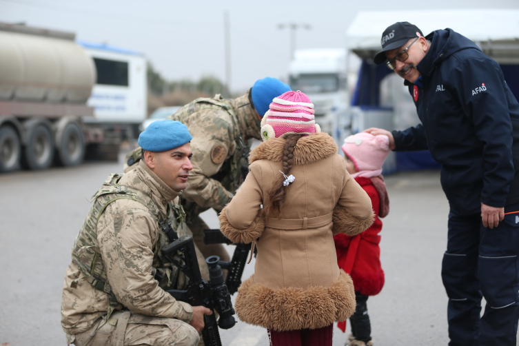 Türk Kızılay ve diğer yardım kuruluşları, aileler ile bölgedeki görevlilere sıcak çorba dağıtıp ikramda bulunuyor.