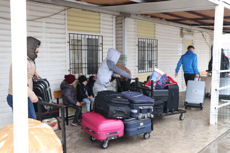 Kilis'teki Öncüpınar Gümrük Kapısı'nda yoğunluk oluşturan Suriyeliler, Gönüllü Geri Gönderme Birimi'ndeki işlemlerinin ardından ülkelerine gidiyor.