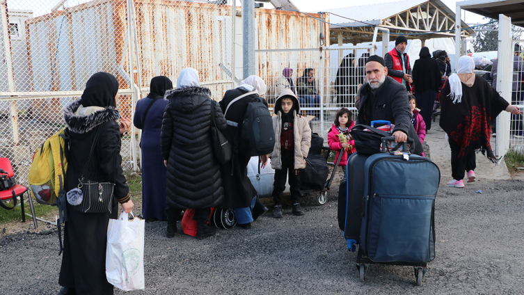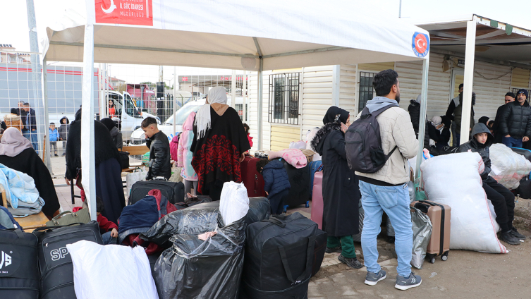 Kilis'teki Öncüpınar Gümrük Kapısı'nda yoğunluk oluşturan Suriyeliler, Gönüllü Geri Gönderme Birimi'ndeki işlemlerinin ardından ülkelerine gidiyor.