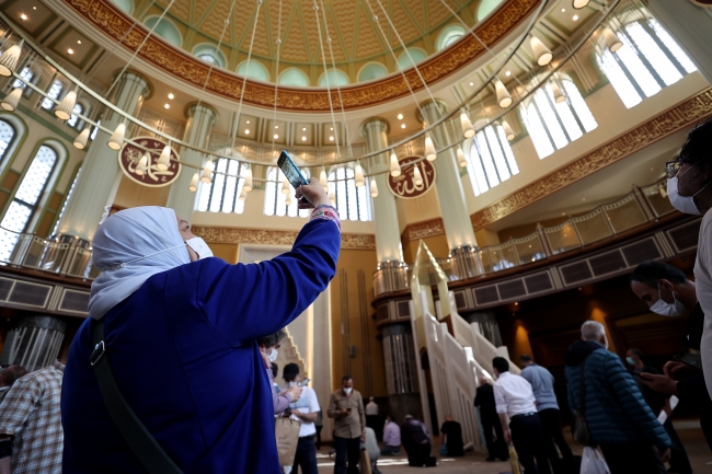 Türkiye'nin farklı illerinden camiyi görmek için gelen vatandaşların yanı sıra yabancı ziyaretçilerin bir bölümü de namaz vakti camide saf tutuyor. Bazı turistler de caminin önünde hatıra fotoğrafı çektiriyor.