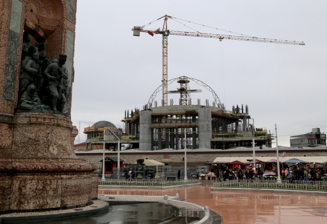 "Taksim camisinin inşaatında bir sene tamamlandı. Bu bir senede bayağı iyi mesafe aldık. Normal cami katı ve kubbe yapımıyla finale doğru gidiyor. Bir yıl sonra bugünden çok daha farklı bir durumda oluruz. Cami kubbe yapımıyla finale doğru gidiyor. Birinci bodrum katı yani kültür-sanat merkezi olarak kullanacağımız mekan var. Ama bunun altında 4 bodrum kat var ki bu otopark olarak kullanılacak. Onların ikisi yapıldı, son ikisi kaldı. Bina bir yandan yukarı doğru yükselirken diğer yandan aşağıya doğru devam ediyor. Kaba inşaatın sonuna doğru yaklaştık. Minarelerin yapımına başlandı."