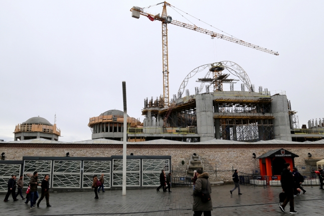 İstanbul 2 Numaralı Kültür ve Tabiat Varlıklarını Koruma Kurulu'nun kararının ardından Maksem'in arkasında bulunan Vakıflar Genel Müdürlüğü'ne ait arazide geçen yıl 17 Şubat'ta temeli atılan caminin inşaatı sürüyor.
